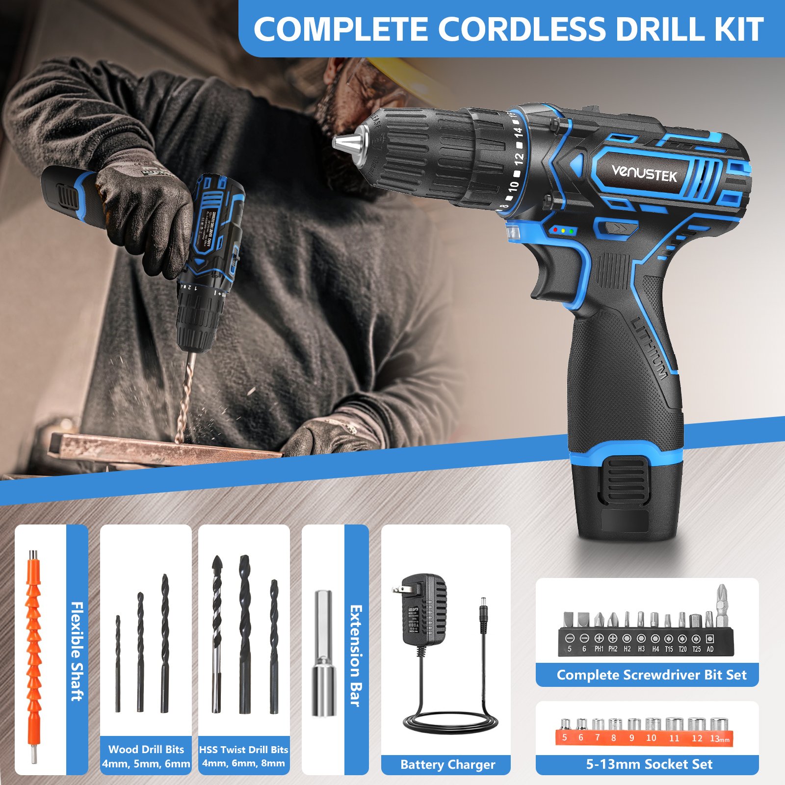 • Complete Pro Kit:This comprehensive drill set includes: cordless drill, 2.0Ah Battery, Charger, Flexible Shaft, Bits (5-13mm), and Sockets. It’s the complete power drill set and ultimate small drills cordless solution for any project