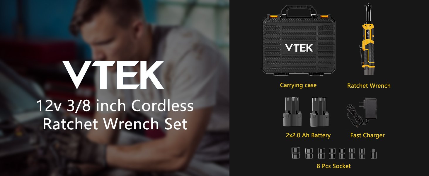 - 【Electric Ratchet Wrench Set】1* Extended Ratchet Wrench; 2* 2.0Ah lithium battery;1* Charger;1* User manual;7* Impact sockets(10mm,11mm,12mm,13mm,14mm,15mm,17mm);1* 3/8-Inch to 1/4-Inch drive adapter;1*Tool box